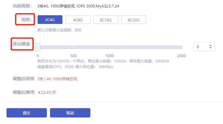 6.然后选择需要的计算规格或需要添加的存储大小。